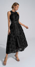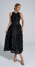 Biberiye Siyah 3D Çiçekli Uzun Elbise