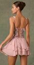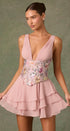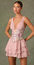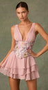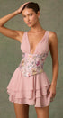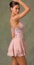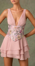 Sakura Çiçek İşlemeli Korse Detaylı Kat Kat Mini Elbise – Pudra Pembe