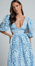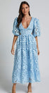 Sandra İşlemeli Dantel Kesimli Midi Elbise