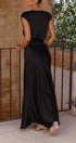 Elbise daha fazla konfor için astarlıdır ve vücuda tam oturması için görünmez bir yan fermuara sahiptir. Zarif görünümünüzü tamamlamak için topuklu ayakkabılar ve altın takılarla eşleştirin. Polyesterden üretilen Selma Maxi Elbise, inceliği lüks bir görünümle birleştiriyor.