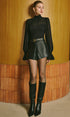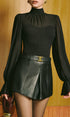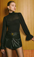 Yarı Transparan Şifon Pileli Bağcıklı Yaka Panelli Bluz