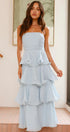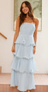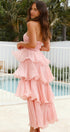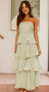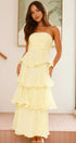 • Tasarım: Straplez, sırtı açık, katmanlı A kesim etekli