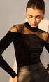 Şeffaf Dantel Panelli Kadife Dar Kesim Bluz