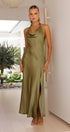 Sofistikeliğin gerçek bir vücut bulmuş hali olan Sian Elbisemizle akşam tarzınızı yükseltin. Arkasında kravat detayı ve lüks dekolte yakasıyla yular tarzına sahip bu elbise zarafet yayıyor. Saten görünümlü malzeme cazibesini artırırken yandan bölme, klasik maksimum uzunluğa cazibeli bir dokunuş katıyor.