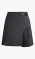 Yan Pile Detaylı Tokalı Kemerli Etek