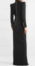 V yakalı ve altın düğmelerle süslenmiş kruvaze tasarıma sahip bu zarif elbiseyle sofistike bir görünüm sergileyin. Sivri yaka ve dolgulu omuzlar zarif tarzını güçlendirirken, yüksek yırtmaç modern bir çekicilik dokunuşu katıyor.