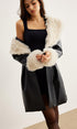 Şık deri görünümlü tasarımı ve yaka ile manşetlerdeki yumuşak kürk detaylarıyla dikkat çeken bu kaban, zarafeti ve sıcaklığı bir araya getiriyor. Belde tokalı tasarımıyla stilinizi öne çıkarın!