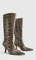 Yılan Derisi Desenli Diz Boyu Çizme