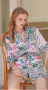 Snow Leopard Kısa Pijama Takımı ile şık bir şekilde gevşeyin. Gündelik rahatlık için tasarlanan bu set, bol kesimli bir siluete ve şık bir kar leoparı baskısına sahiptir. Yaka ve kısa kollular sofistike bir dokunuş katarken, uyluk uzunluğundaki şortlar uzanmak veya uyumak için nefes alma kolaylığı sağlar. Sıcak geceler veya rahat sabahlar için mükemmeldir.