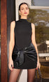 Dik Yaka Suni Deri Büzgü Panelli Elbise