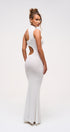 Tüm Gözler Üzerinizde: Beyaz Dokulu Cut-Out Maxi Elbise