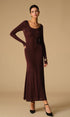 Bağlamalı Yaka Sırt Dekolteli Jarse Uzun Elbise