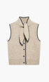 Bağcıklı Yaka Kontrast Biyeli Düğmeli Triko Yelek