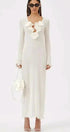 Derin V yakalı ve uzun kollu maxi elbisemizle gardırobunuzu yükseltin. Fırfırlı manşetler ve etek kısmı romantik bir dokunuş katarken, ön çiçek detayları kadınsı çekiciliğini artırıyor. Yarı şeffaf polyester kumaş güzel bir örtü oluşturur ve orta derecede esnek, rahat bir uyum sunar.