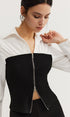 Çift Fermuarlı Renk Bloklu Polo Yaka Tişört