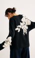 V Yaka Örgü-Çiçekli Shift Kazak