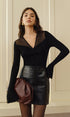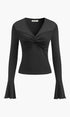 Semi-Sheer V-Neck Mesh Detaylı Bluz