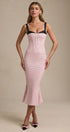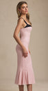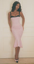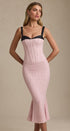 Valentina Bra Detaylı Balık Form Midaxi Elbise – Pembe Puantiyeli
