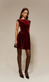 Kadife Pileli Askılı Kısa Elbise