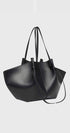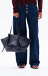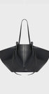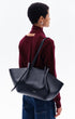Geniş Vetra Deri tote çanta, siyah pürüzsüz deriden üretilmiştir.