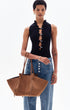 Büyük Vetra Süet tote çantası, Cognac süetten üretilmiştir.