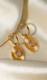 Beyaz Pırlanta Taşlı 18 Ayar Altın Kaplama Oval Küpe