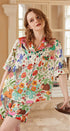 Beyaz Orman Bahçe Desenli Kısa Rahat Giyim Seti