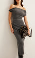Yün Karışımlı Büzgü Detaylı Triko Etek Takım