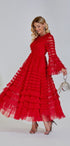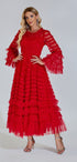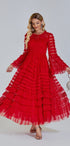 Kiera Kırmızı Uzun Kol Maxi Elbise