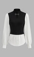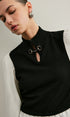 2’si 1 Arada Renk Bloklu Metal Detaylı Triko Bluz