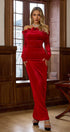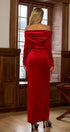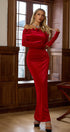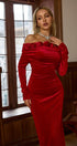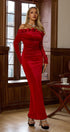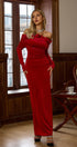 Breenda Kırmızı Uzun Kollu Kadife Çiçek Maxi Elbise