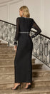 Caviana Uzun Kollu Elmas Bandajlı Maxi Elbise