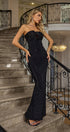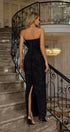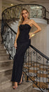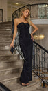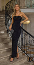 Astrid Siyah Çiçek İşlemeli Uzun Elbise