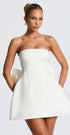 Straplez ve yapılandırılmış gövde yapısıyla Abbey, bedeni nazikçe sararak modern bir siluet oluşturur. Minimal duruşunun ardında güçlü bir duruş yatan bu elbise, bel kısmındaki kabarık detaylar ve sırtındaki fiyonk vurgusuyla romantik bir hava katıyor. Düğün sonrası kutlamalar, nişan davetleri ya da şık yaz akşamları için göz alıcı bir tercih.