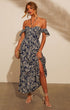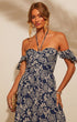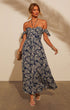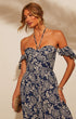 Akasya Düşük Omuzlu Boyundan Bağlamalı Maxi Elbise