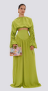 - Tasarım: Üstü yuvarlak yakalı, pilili uzun kollu iki parçalı set