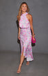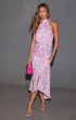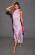 Addison Boyundan Bağlamalı Çiçekli Saten Maxi Elbise