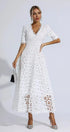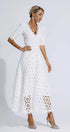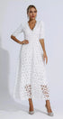 Adelina Beyaz Dekolteli Uzun Elbise