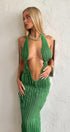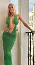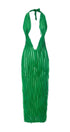 Afra V Yaka Şifon Fırfırlı Uzun Elbise