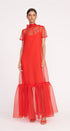 Agatha Tül Kaplama Kısa Kollu Maxi Elbise