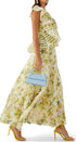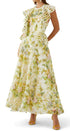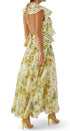 Aggie Baskılı Sırtı Açık Fırfırlı Maxi Elbise