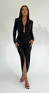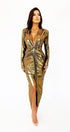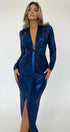 Ailiyah Metalik V Yaka Yırtmaçlı Midi Elbise