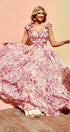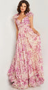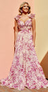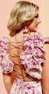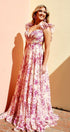 Alania Baskılı Fırfırlı Bağcıklı Uzun Elbise