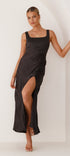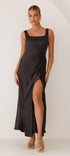 Alaria Maxi Elbisemizle unutulmaz bir gece yaşayın! Bu çarpıcı uzun elbise, resmi etkinlikler veya özel günler için mükemmeldir ve en iyi giyinerek taçlandırılmanızı sağlar. Kalın omuz askılı, muhteşem bir kare yakaya, yanlarda büzgülü detaylara ve şık bir ön yan bölmeye sahiptir. Polyesterden yapılmış olup, zamana meydan okuyan ve hoş bir uyum sunar. Lüks bir görünüm için minimal mücevherler, şeritli topuklu ayakkabılar ve bir el çantasıyla eşleştirin.