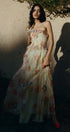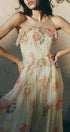 Alberta Baskılı Büzgülü Fırfırlı Maxi Elbise
