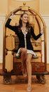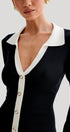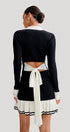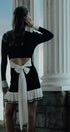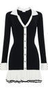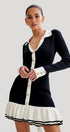 Kontrast Fiyonk Detaylı Mini Elbise ile gardırobunuza şıklık katın. Bu büyüleyici elbise, uzun kollu ve sofistike bir dokunuş katan altın orta ön düğmelere sahiptir. Çift katmanlı kontrast etek fırfırı ve kontrast fiyonk detayı, eğlenceli ama zarif görünümünü güçlendiriyor.