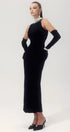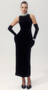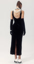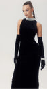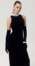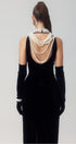 Alexia İnci İşlemeli Sırtı Açık Kadife Maxi Elbise