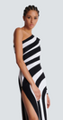 Alizea Tek Omuz Yırtmaçlı Asimetrik Çizgili Maxi Elbise