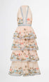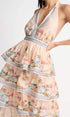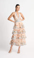 Alma Manzara Baskılı Katlı Boyundan Bağlı Uzun Elbise