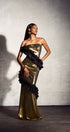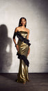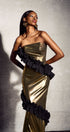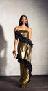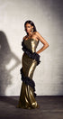 Alma Metalik Straplez Fırfırlı Uzun Elbise